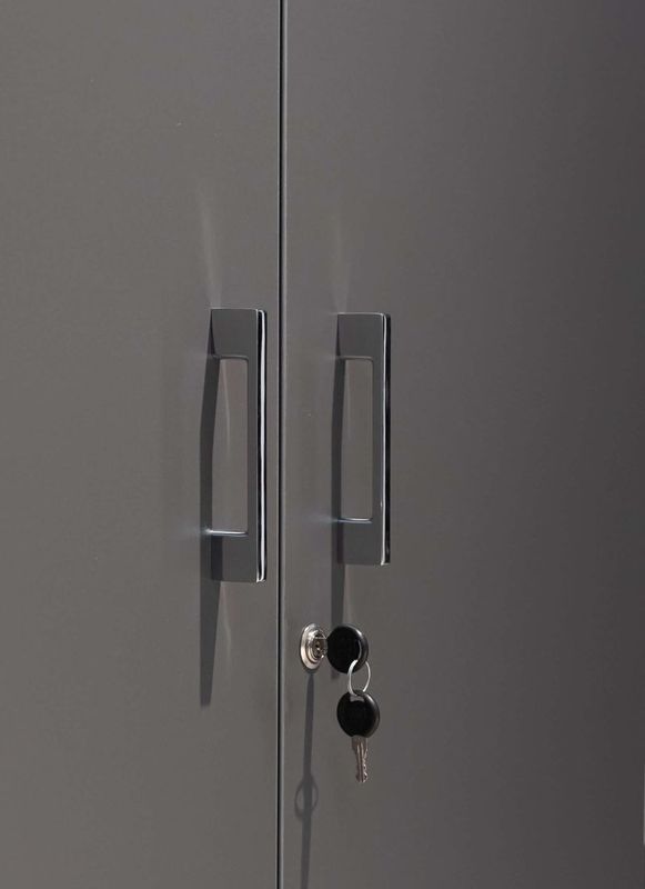 Die Türgriffe sind in der Farbe Silber. Zusätzlich wird eine Wandbefestigung geliefert. Diesen Schrank ist lieferbar in den Farben: